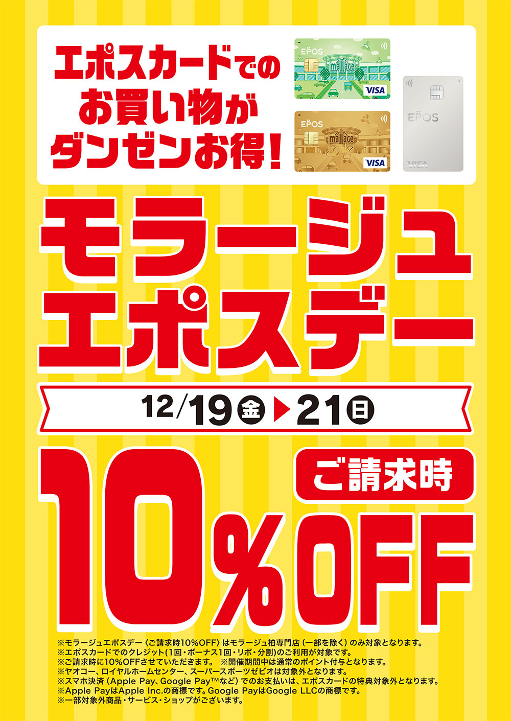 期間中エポスカードでお買い上げで請求時10%OFFになるキャンペーン!